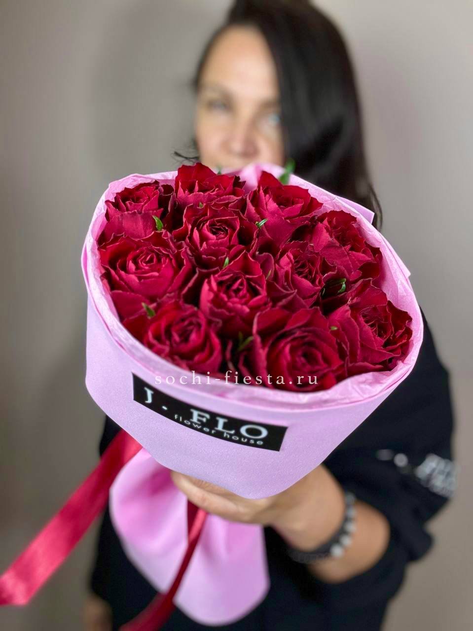 Одиннадцать бутонов кенийской розы собраны в лаконичный букет с комбинированной упаковкой. Красный цвет звучит ярко и уверенно.