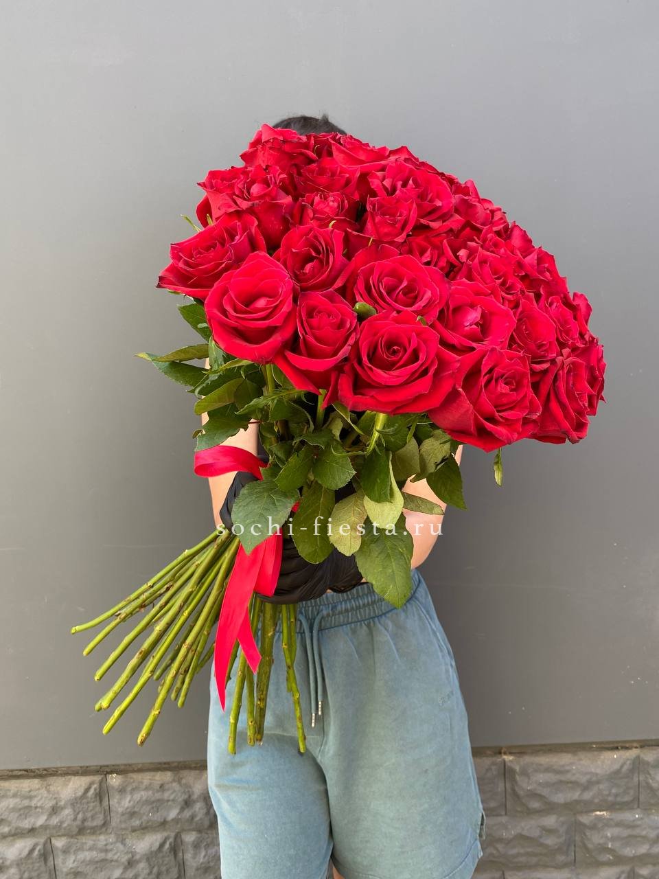 35 красных роз под ленту
