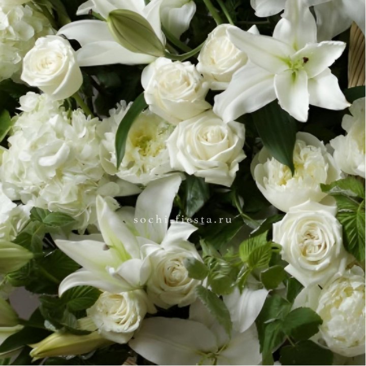 - Корзина-гигант — плетёная корзина из сезонных цветов для открытия бизнеса и торжественных вручений.