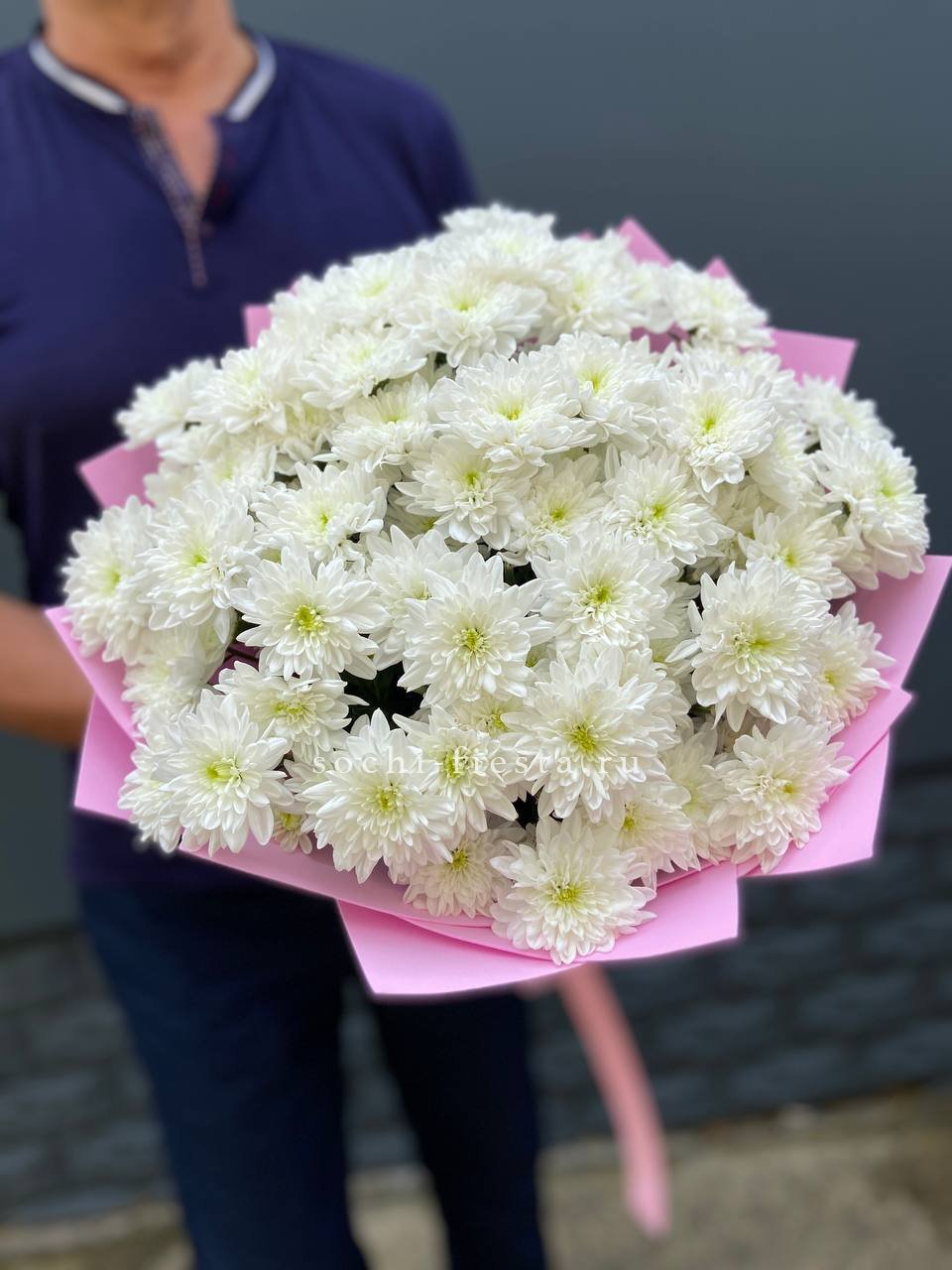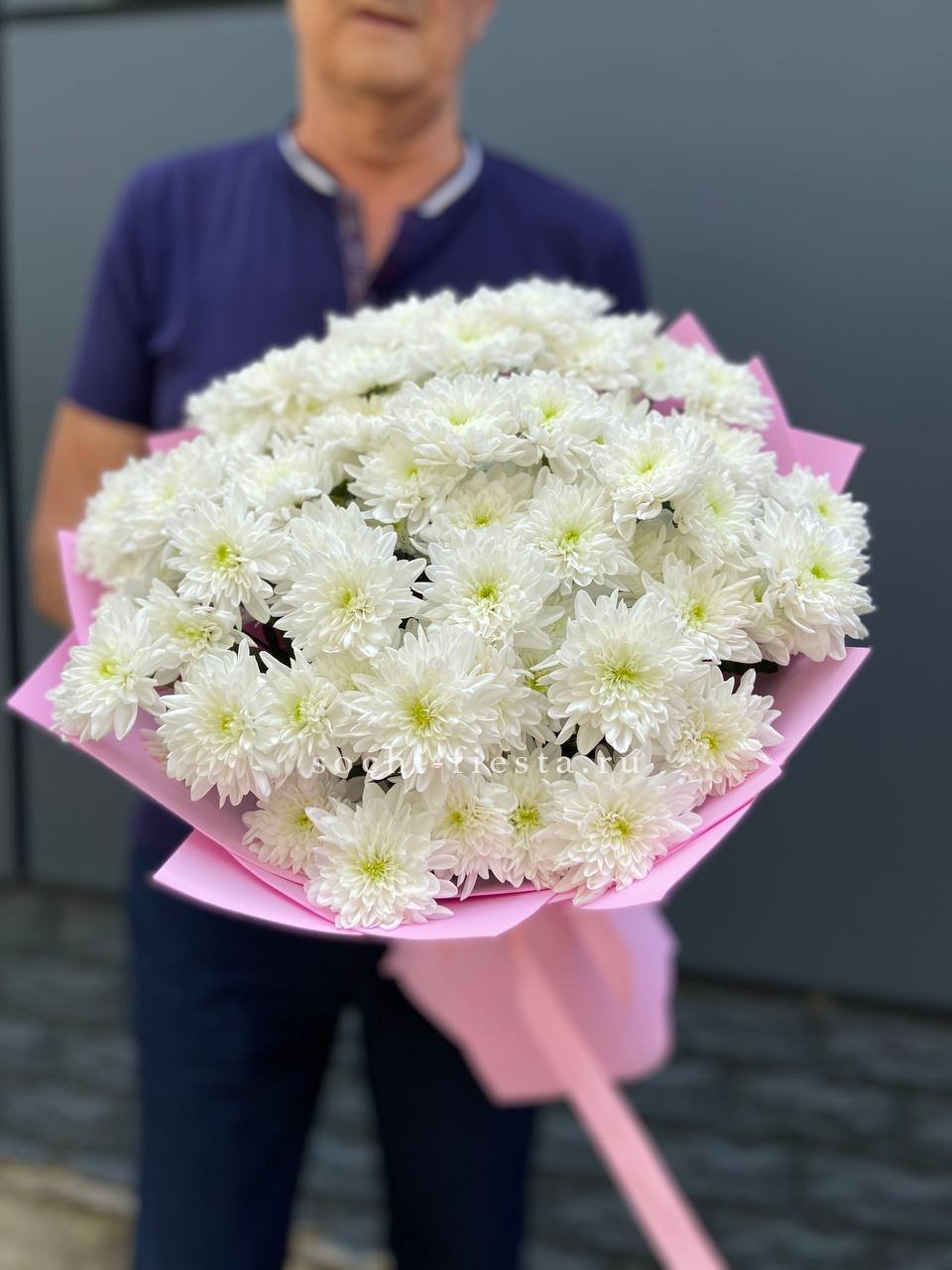 хризантема кустовая - 17 веток, тишью, дизайнерская упаковка, лента.