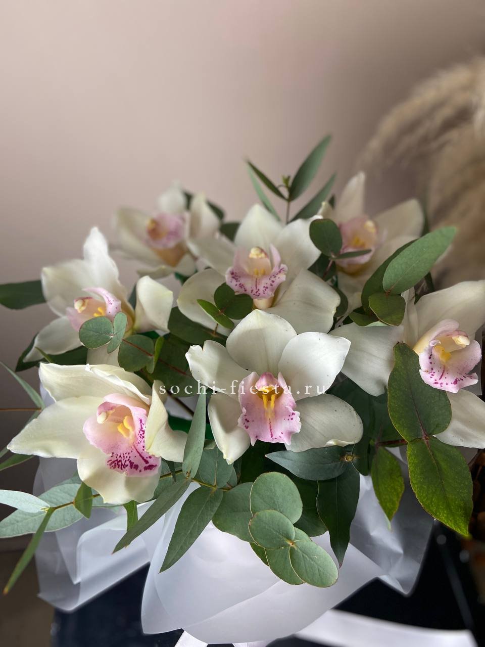орхидея цимбидиум - 7 шт., декоративная зелень, упаковка на выбор.