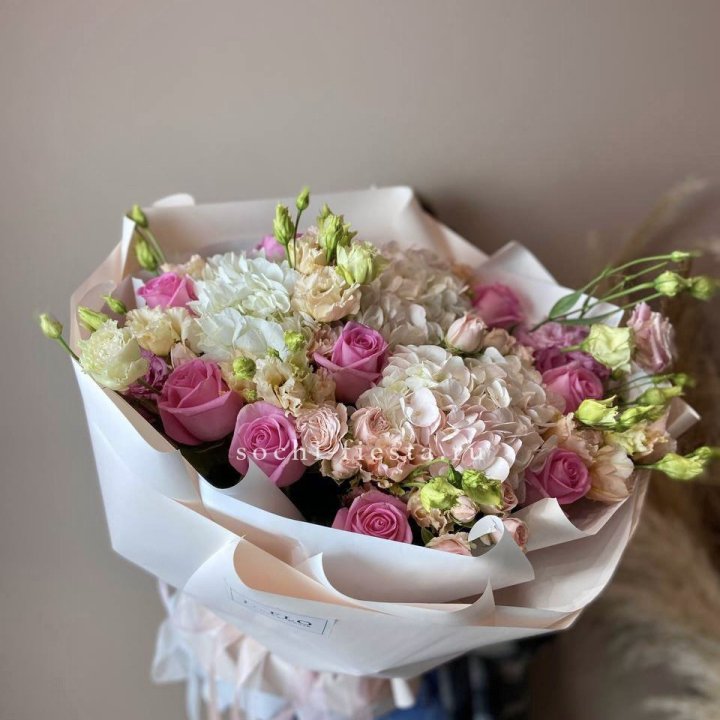 - Редкий состав — David Austin, ранункулюс, анемоны, сезонные пионы.