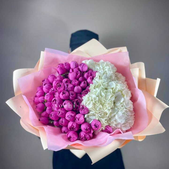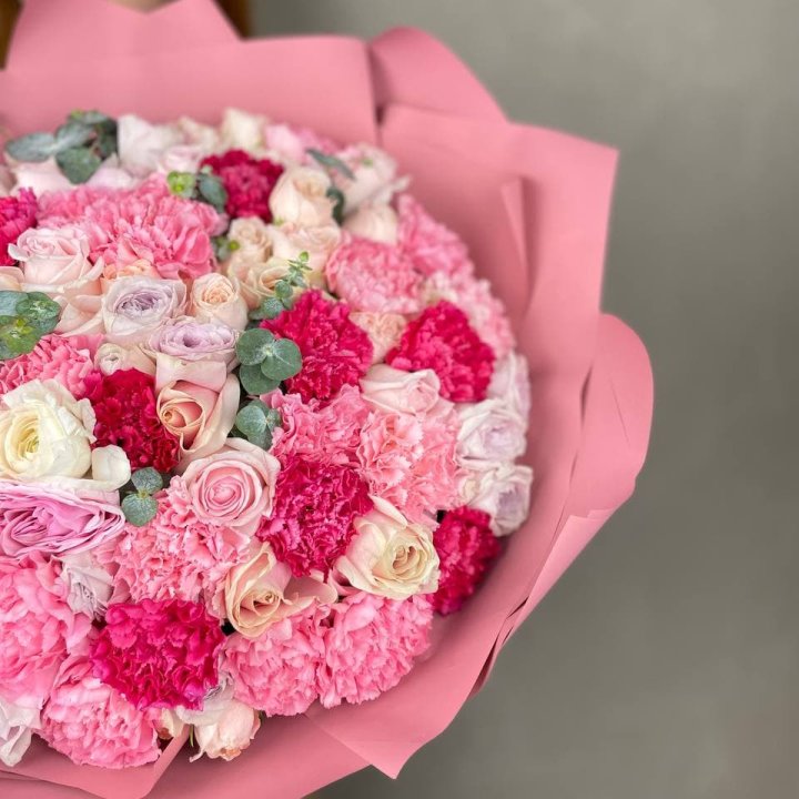 - Редкий состав — David Austin, ранункулюс, анемоны, сезонные пионы.