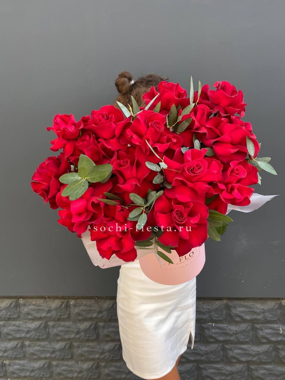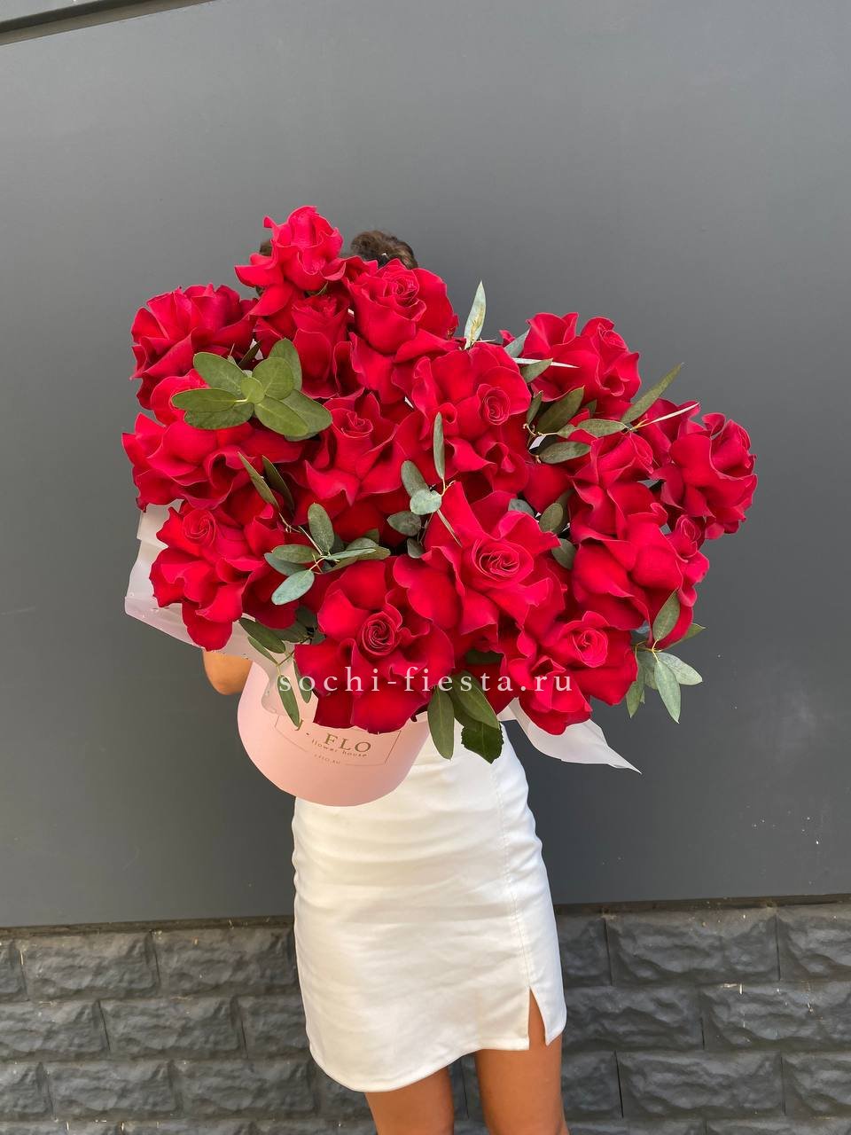бокс 20D, белая французская роза, эустома, эвкалипт.