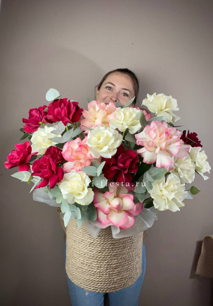 Для заказа товара "35 французских роз микс в джутовом боксе" с доставкой в Вологде нажмите в корзину