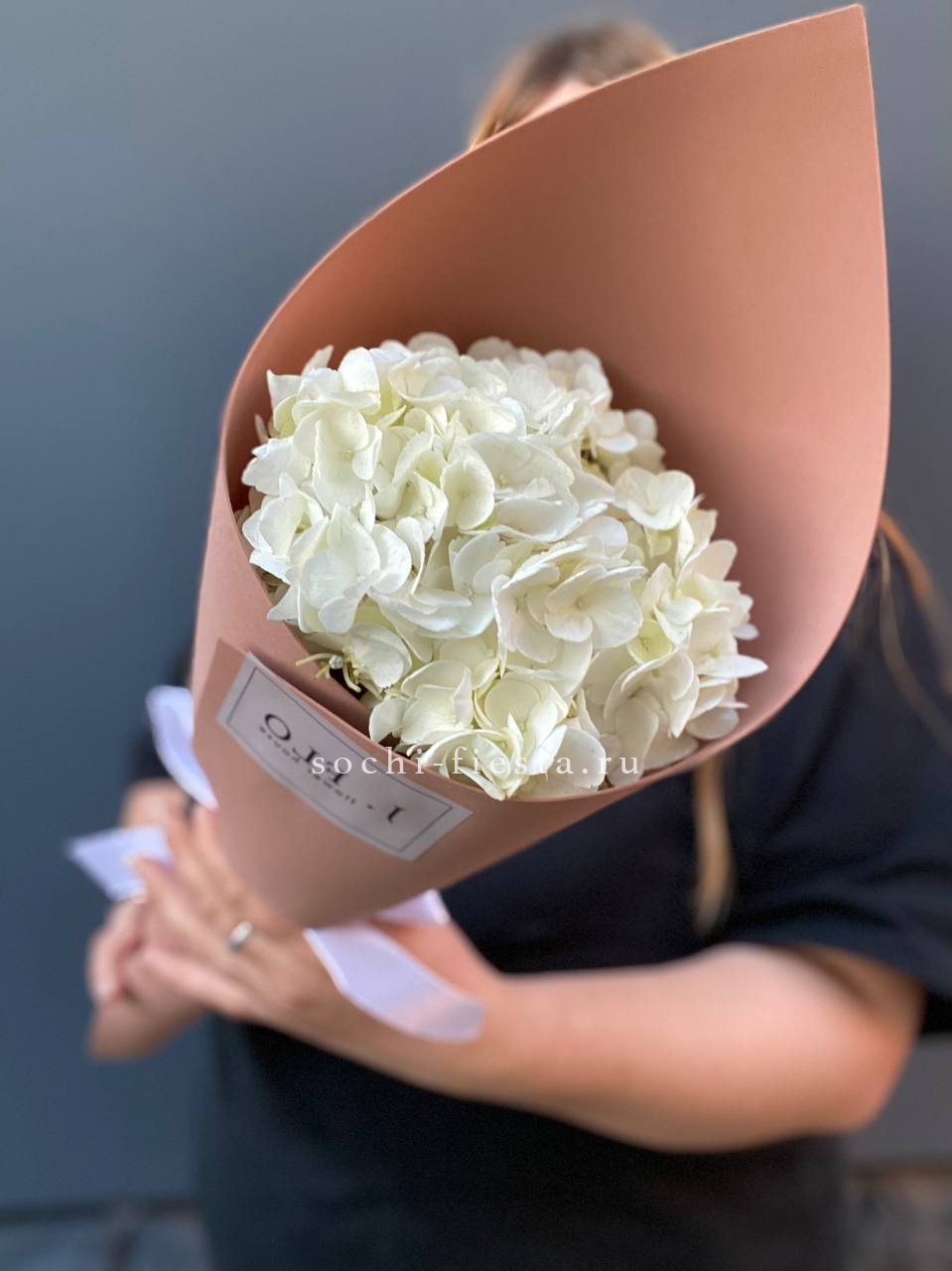 Объёмные шапки розовой гортензии собраны в аккуратный букет. Плотные соцветия создают выразительное присутствие и хорошо держат форму. Универсальный вариант для благодарности коллегам или партнёрам.