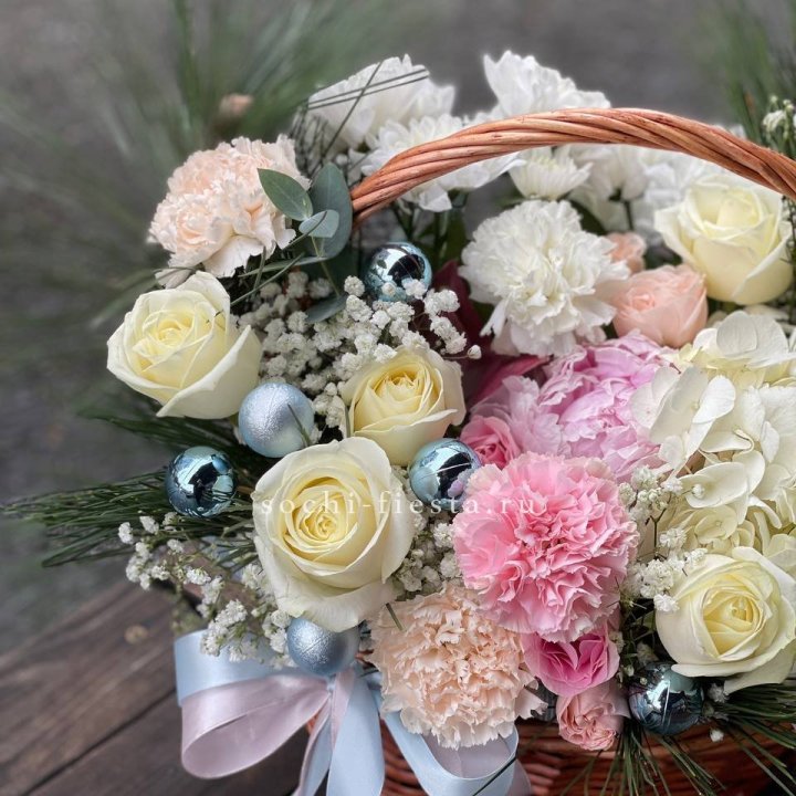 Каждый сезон приносит в Вологде свой ассортимент корзин. Весной флорист создаёт корзины с тюльпанами и нарциссами — лёгкие, нежные, полные ощущения обновления. В мае-июне приходят пионы — Sarah Bernhardt, Bowl of Cream, Red Charm — главный флористический праздник. Осенью — хризантема в тёплых гаммах с декоративными ягодами и ветвями. Зимой — хвойные аранжировки с амариллисом для праздничной атмосферы.