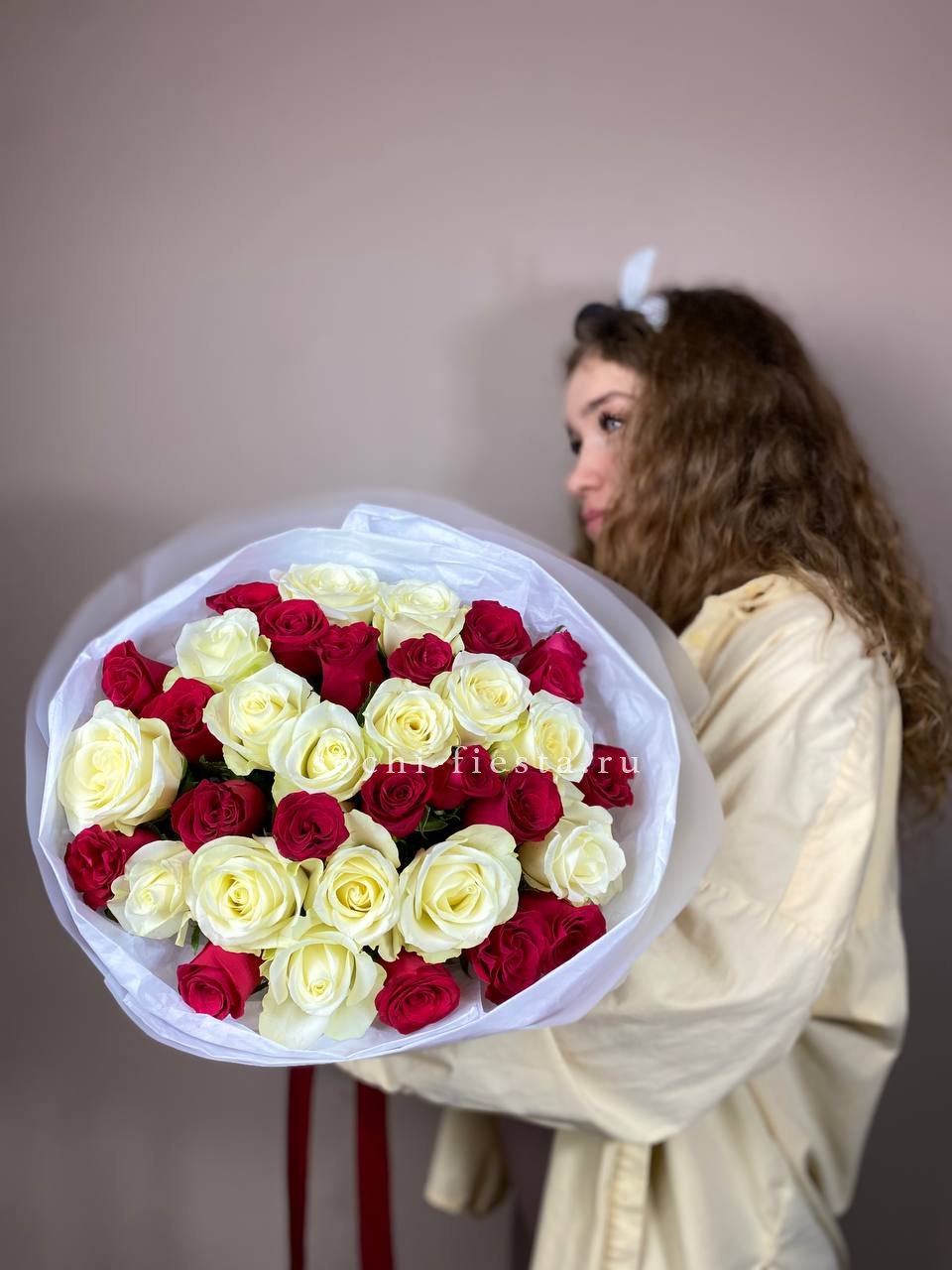 Для заказа товара "Букет из красных белых 35 роз" с доставкой в Вологде нажмите в корзину