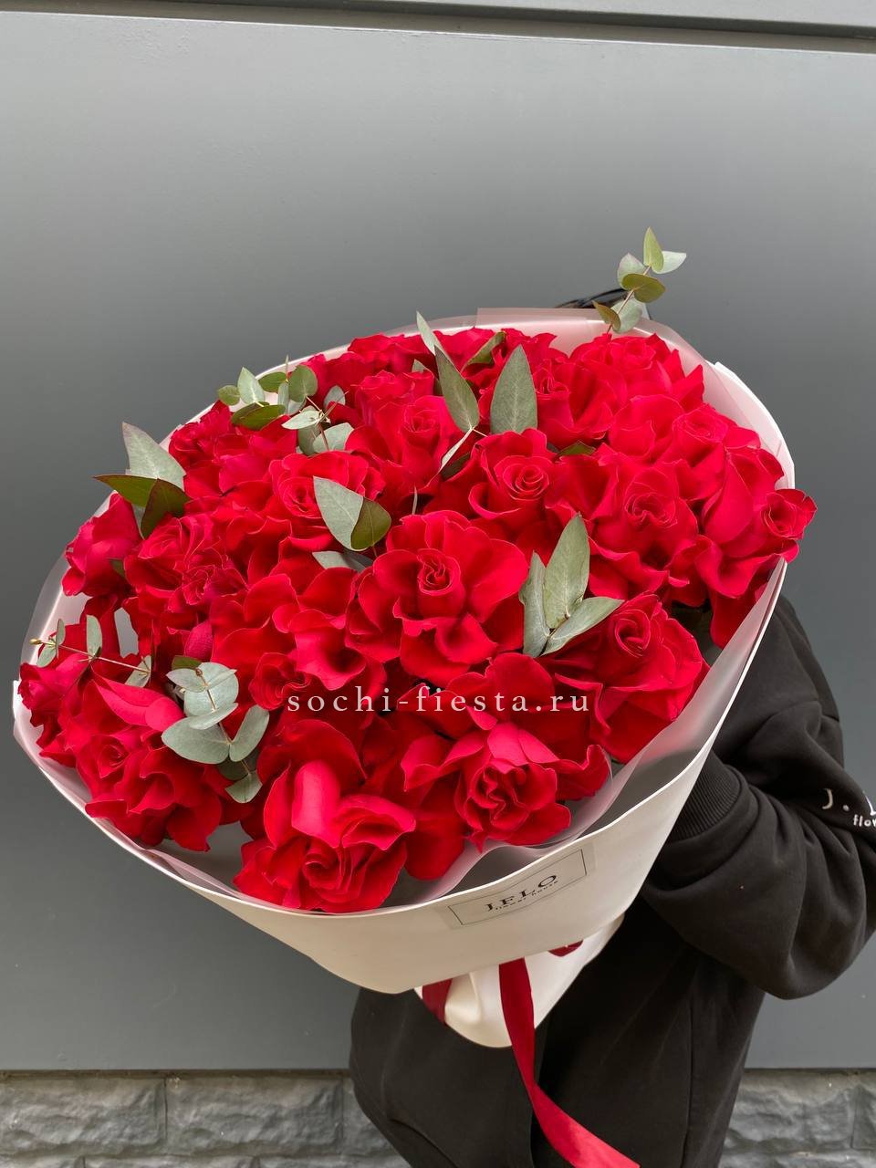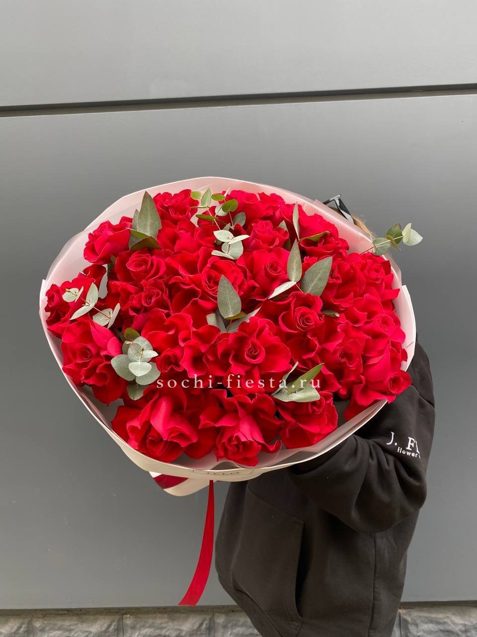 вывернутые розы - 19 шт., эвкалипт - 1шт., лента, авторская упаковка.