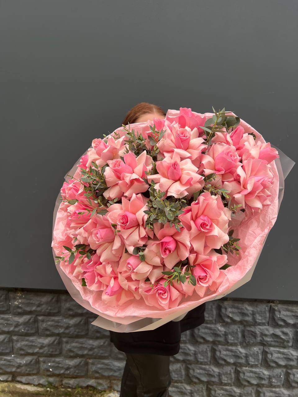 вывернутые розы - 5 шт., эвкалипт - 2шт., лента, авторская упаковка.