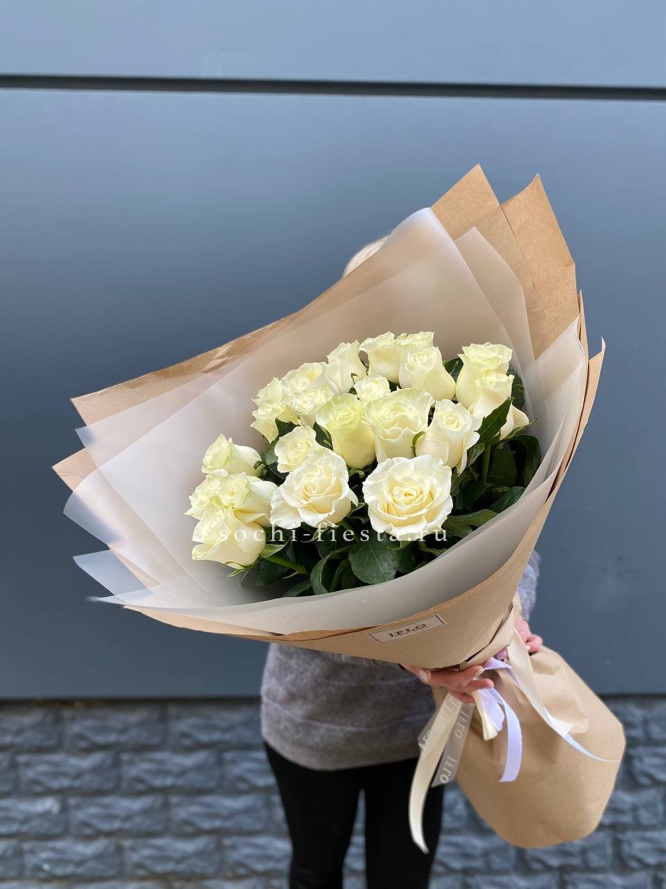 Букет высоких белых роз