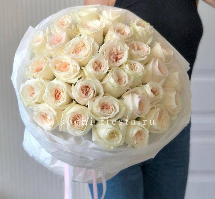 9 белых роз  вайт о'хара, статица, эвкалипт, лента, комбинированная упаковка.