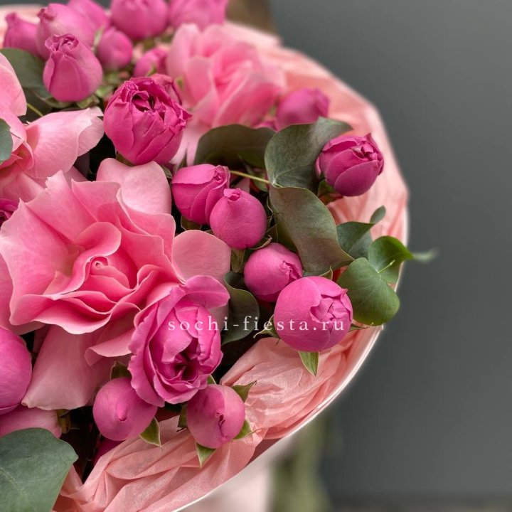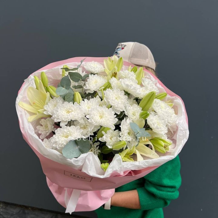 Зима и лето в Вологде — розы и хризантемы как основа. Эти виды стабильны в поставках круглый год. Флорист дополняет их сезонными акцентами: хвойные ветви зимой, открытая эустома летом. Сборный букет в любое время года выглядит живым и актуальным.