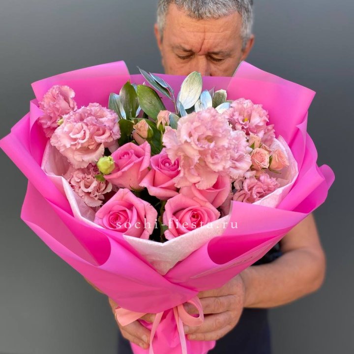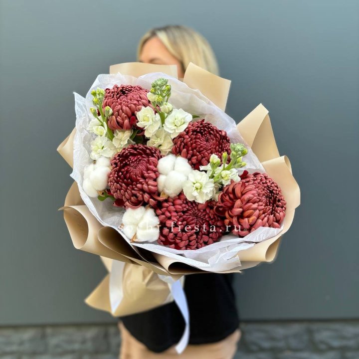 Зима и лето в Вологде — розы и хризантемы как основа. Эти виды стабильны в поставках круглый год. Флорист дополняет их сезонными акцентами: хвойные ветви зимой, открытая эустома летом. Сборный букет в любое время года выглядит живым и актуальным.