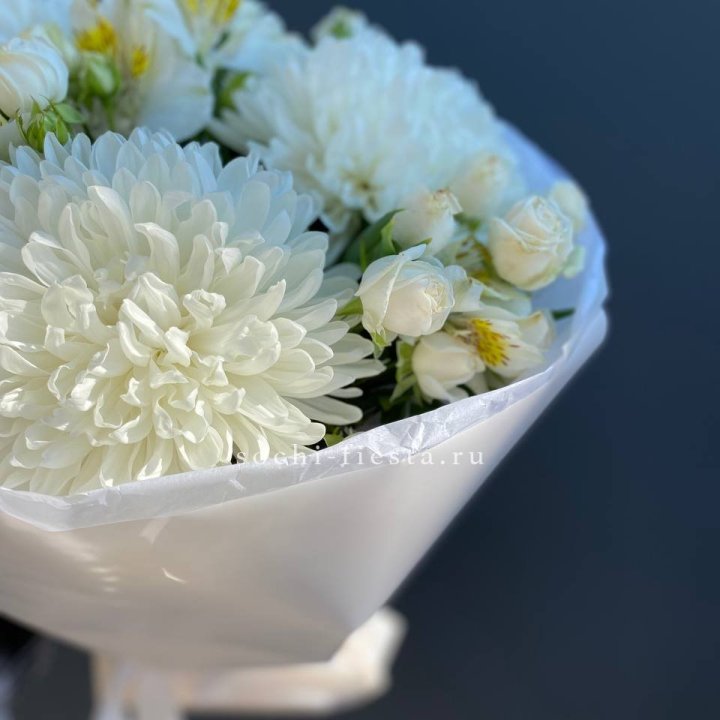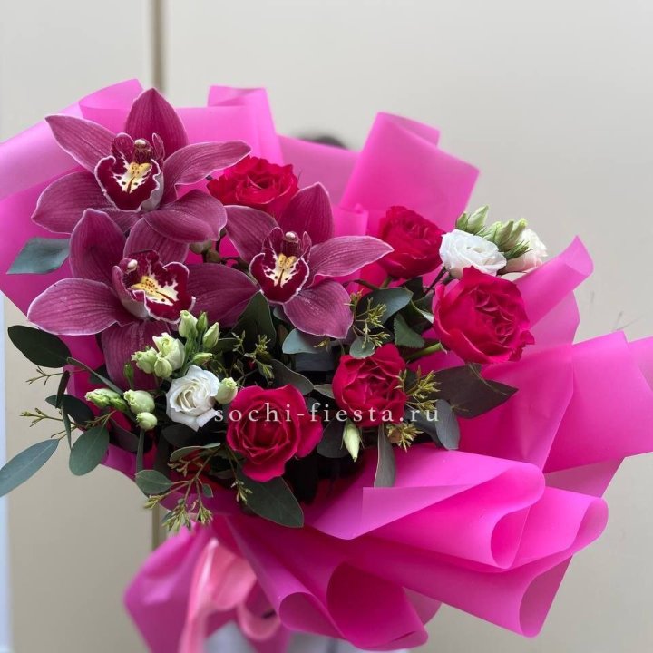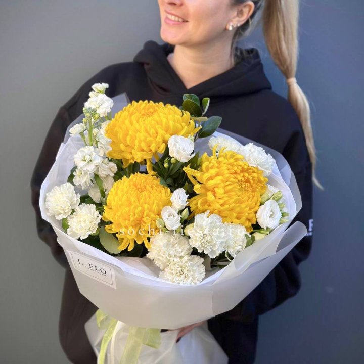 Зима и лето в Вологде — розы и хризантемы как основа. Эти виды стабильны в поставках круглый год. Флорист дополняет их сезонными акцентами: хвойные ветви зимой, открытая эустома летом. Сборный букет в любое время года выглядит живым и актуальным.