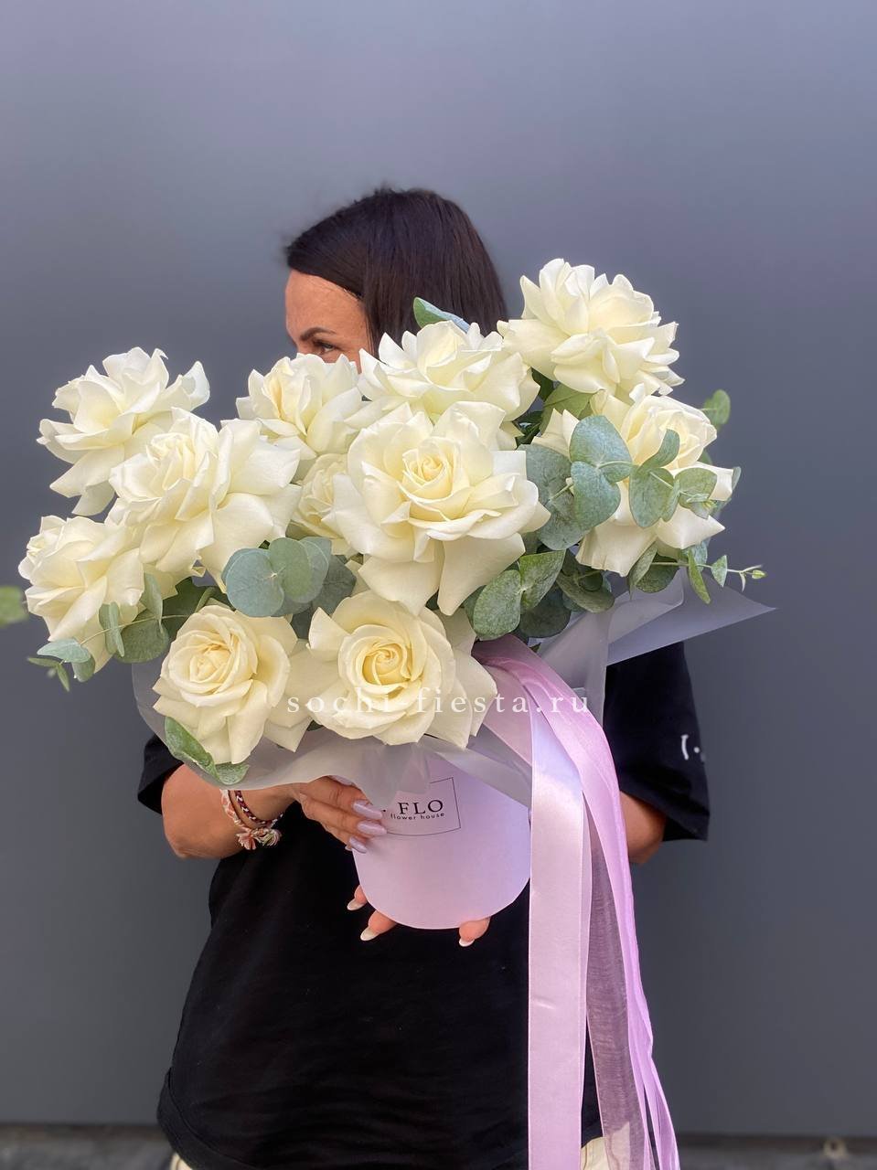 пионовидные розы мисти,  хлопка, эвкалипта, оформления.