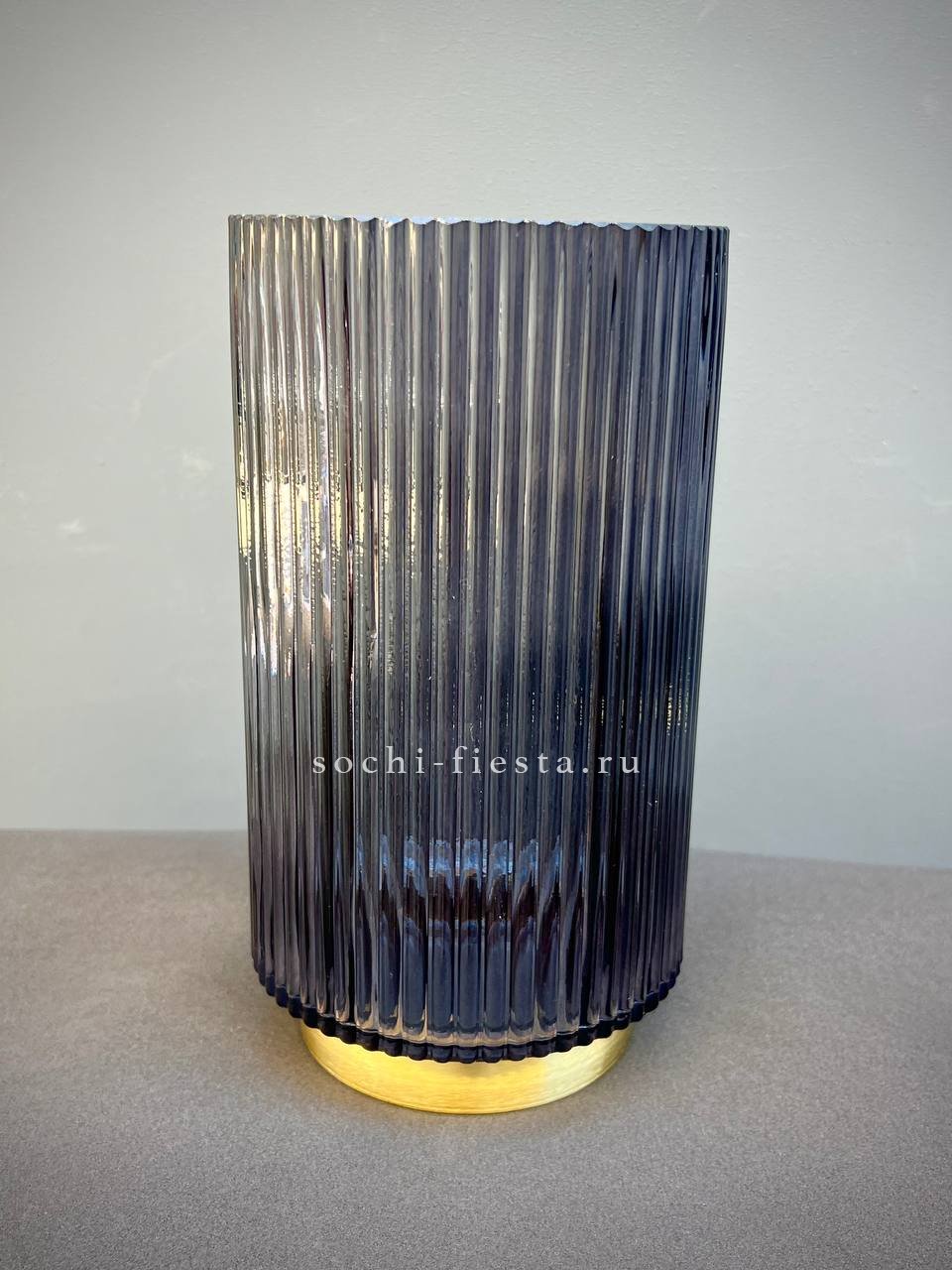 стеклянная ваза под цветы элегантное и стильное дополнение к интерьеру. Серый оттенок создаст уютную атмосферу, а бронзовая окантовка дна из латуни обеспечит долговечность изделия. В вазу можно наливать воду под живые цветы или ставить сухоцветы. Материал: стекло. Цвет: серый. Размер: 15х28 см (ШВ). Диаметр горлышка: 14 см. Объем: 3000 мл.