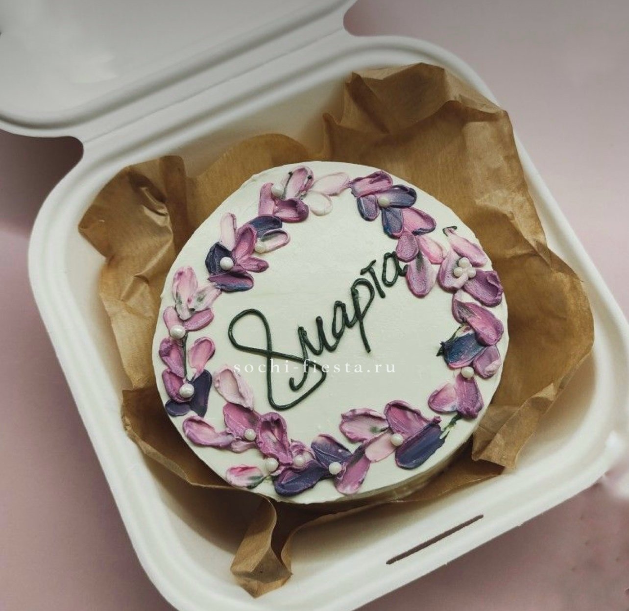 Три яруса создают выразительную вертикаль с градиентом от белого через лавандовый к глубокому фиолетовому. Каскад сахарных цветов добавляет движение и объем. Впечатляющее присутствие в пространстве.